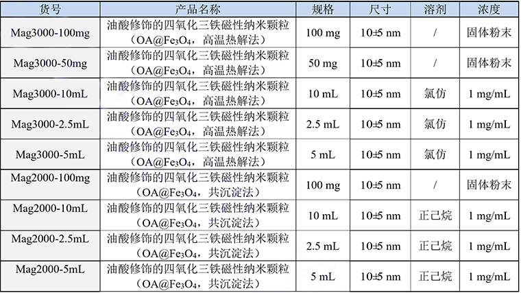 油酸修飾的四氧化三鐵磁性納米顆粒