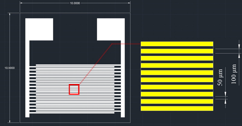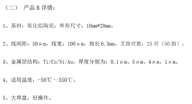 50μm陶瓷叉指電極IDE電容陣列生物氣體濕度傳感器芯片