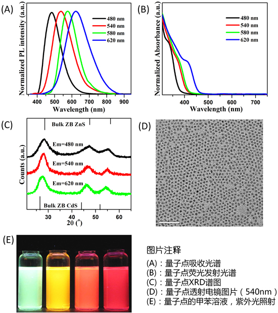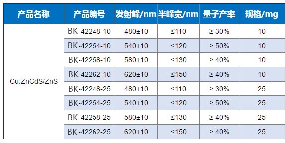 油溶性Cu摻雜ZnCdS 量子點(diǎn) PL 480 nm--620 nm