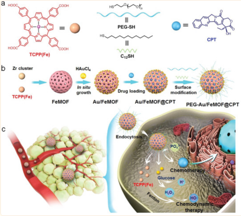 A Nanomedicine Fabricated from Gold Nanoparticles-Decorated Metal-Organic Framework for Cascade Chemo/Chemodynamic Cancer Therapy