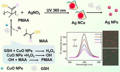 Self-Cascade Nanoenzyme of Cupric Oxide Nanoparticles (CuO NPs) Induced in Situ Catalysis Formation of Polyelectrolyte as Template for the Synthesis of Near-Infrared Fluorescent Silver Nanoclusters and the Application in Glutathione Detection and Bioimaging