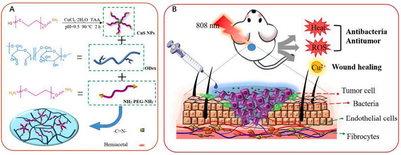 Injectable self-healing CuS nanoparticle complex hydrogels with