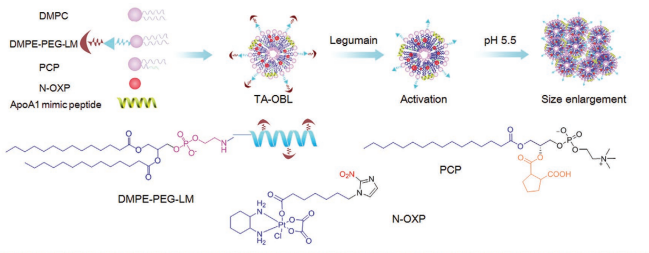 組成: 蛋白偶聯(lián)物+ph敏感的磷脂+奧沙利鉑前藥(N-OXP)+脂蛋白 粒徑:10-80nm