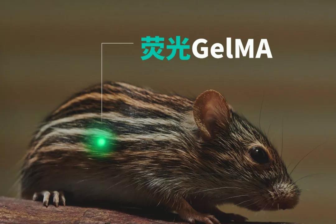 甲基丙烯;髂z(GelMA)為雙鍵改性明膠,其可通過紫外及藍光固化成膠。GelMA光固化水凝膠兼具天然和合成生物材料的特性,其具有適于細(xì)胞生長和分化的三維結(jié)構(gòu)。熒光 GelMA是在GelMA分子上化學(xué)接枝熒光分子,通過改變熒光分子類型而使其具有特定的熒光顏色。此化學(xué)標(biāo)記方法避免了物理混合或靜電吸附等方法中熒光分子容易擴散出體系的缺點,同時也避免了熒光微粒成像不均的缺點。該熒光GelMA具有良好生物相容性,在體內(nèi)外成像、示蹤、材料降解、生物傳感及3D打印工藝等領(lǐng)域有廣闊的應(yīng)用前景。