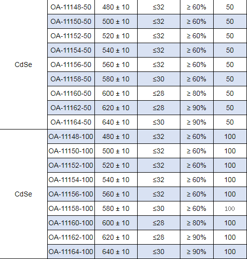 油溶性CdSe 量子點 PL 480 nm-640 nm