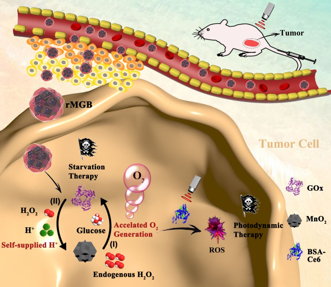 Other instructions: shelf life of half a year under sealed state [main advantages] 1, especially strong starvation treatment and PDT synergistic effect for aerobic tumors, and strong anti-tumor effect in vitro and in vivo; 2, rMGB is a safe drug delivery system for rMGB, and the safety experiment in mice will not cause systemic effects; 3, this bionic hybrid nanoenzyme is expected to become a potential oxygen agent for the treatment of hypoxic tumors.