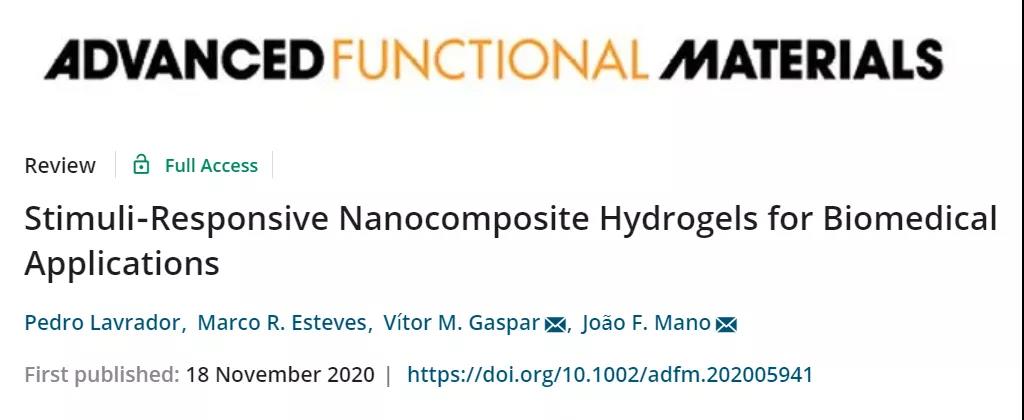 《AM》綜述:刺激響應(yīng)性納米復(fù)合水凝膠在生物醫(yī)用領(lǐng)域的應(yīng)用