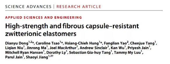 天津大學《Science Advances》:高強度和纖維狀抗膠囊兩性離子水凝膠彈性體