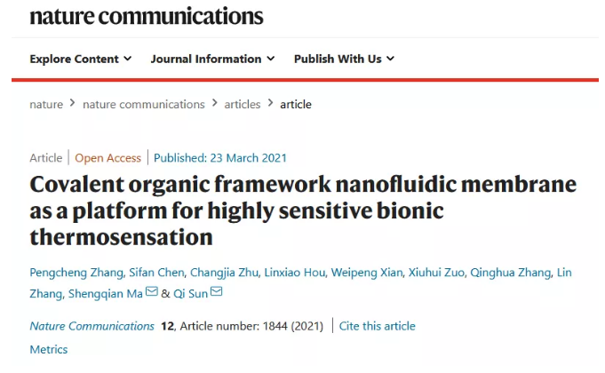 浙江大學(xué)孫琦教授Nature子刊:人造熱感皮膚來(lái)了!COF納米流控膜作為高靈敏仿生熱感覺平臺(tái)的研究