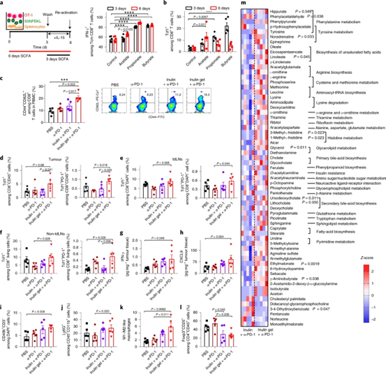 口服菊粉凝膠治療增加了關鍵共生微生物及其短鏈脂肪酸代謝物的相對豐度,并增強了對干擾素-γ+CD8+T細胞的回憶反應以及干細胞樣T細胞的建立-細胞因子-1+PD-1+CD8+T細胞在腫瘤微環境中。用于腸道微生物組原位調節的凝膠可能更廣泛地適用于治療與腸道微生物組失調相關的病理。相關論文以題為發表在《Nature Biomedical Engineering》上。