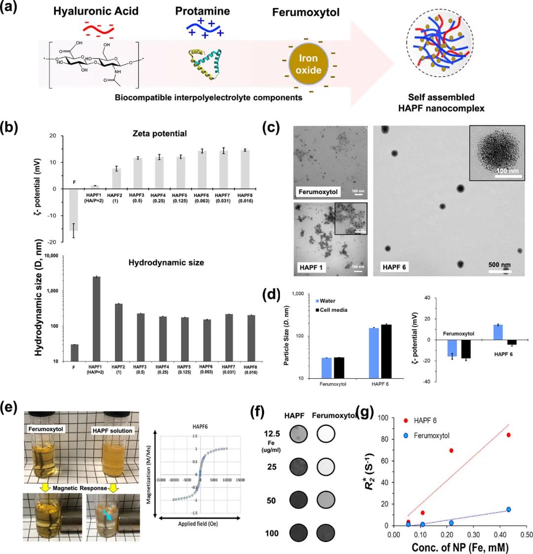 于此,美國西北大學Dong-Hyun Kim利用臨床可用的材料(透明質酸,魚精蛋白和納米氧化鐵;HAPF)開發了一種磁性納米復合物,并將其用于標記NK細胞。