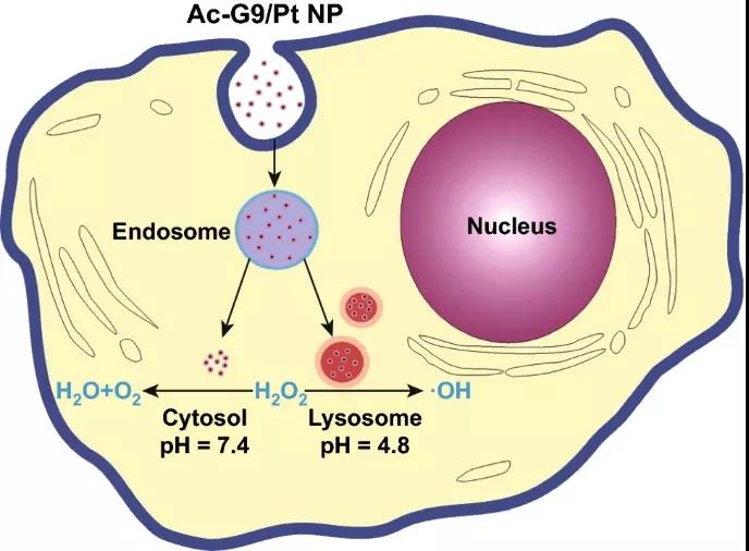 AuNP能夠穿透細胞和細胞隔室,并通過氧化應激引起細胞毒性(壞死)。因此,具有模擬過氧化物酶活性的納米酶可以催化過氧化氫分解并產生活性氧。誘導毒性主要用于腫瘤治療,通過光動力療法(PDT)增強其催化性能。