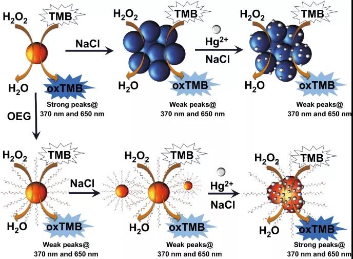 9. 金納米酶比色傳感器檢測海水中Hg2⁺離子。