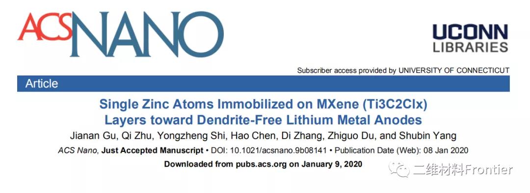ACS NANO:MXene (Ti3C2Clx)層上的單鋅原子對無枝晶鋰金屬陽極的固定