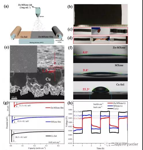 總之,我們證明金屬鋰最初傾向于在單個鋅原子固定的MXene層上成核和生長。隨后,由于平面上活性鋅位的作用和邊緣處強烈的避雷針效應,鋰沿成核位點垂直生長,提供碗狀鋰。因此,該陽極具有過電位低、循環壽命長和良好的深剝鍍性能。通過利用Zn-MXene-Li獨特的電化學行為,在10℃下,完整的電池顯示出良好的循環壽命高達500次。此外,基于成熟的軋制和噴涂技術,Zn-MXene薄膜及其混合鋰陽極可以很容易地放大,這將大大有利于未來鋰電池的發展。