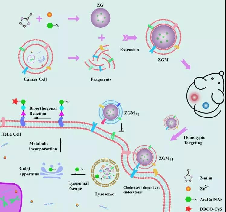 In view of this, researcher Qu Xiaogang, Changchun Institute of Applied Chemistry, Chinese Academy of Sciences, constructed a cancer cell membrane camouflaged metal-organic framework (MOFs)-azido sugar and used it to achieve cancer cell-selective MGL in vivo.